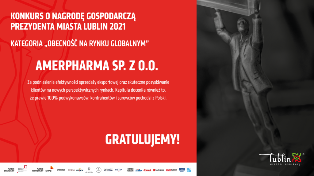 Otrzymaliśmy wyróżnienie w prestiżowym konkursie „Nagroda Gospodarcza Prezydenta Miasta Lublin”. Tytuł Laureata przyznawany jest w pięciu kategoriach: „Innowacyjność”, „Duże Firmy – Lokomotywy Gospodarcze Miasta”, „Obecność Na Rynku Globalnym”, „Młode Firmy” oraz „Przemysły Kreatywne”.